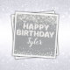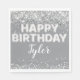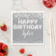 Grey and silver birthday party napkins for a fun party with a modern classic look with glitter and foil balloons on paper napkins.