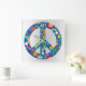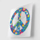 Grey Silver Holographic Peace Love Square Wall Clock