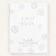 This cute winter gender-neutral baby shower guest book features a white background with snowflakes in light grey. The reverse side features a light grey background with white snow patterns. Perfect for winter showers. Personalize it for your needs. You can find matching products at my store.