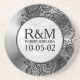 Elegant silver grey simple stainless steel look black floral paisley lace. Customizable text for wedding coaster template.
