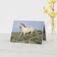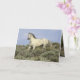 This battle-scarred wild grey stallion comes proudly down the hill to investigate in the Adobe Town Herd Area of Wyoming. There is an additional image of the stallion inside the card. Both images are by Carol Walker.