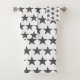 Funky and Stylish Grey Star Stars Pattern Bath Towels Set to add to your home decor collection. A cool gift / present idea for all who love custom design items, positive vibes, geometry, shapes, busy prints, star theme etc. Change the background colour to suit your own needs, style and taste.