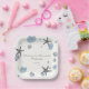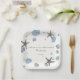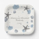 Grey Starfish Blue Shell Beach Wedding Paper Plate