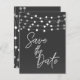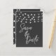 Grey String Lights Modern Script Save the Date Postcard. Customize with any text.