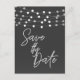 Grey String Lights Modern Script Save the Date Announcement Postcard