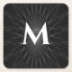 Grey string waves undulate gracefully across a sleek black canvas, serving as a striking backdrop. In the foreground, a crisp white monogram initial adds a touch of personalization and sophistication to this modern and minimalist artwork.