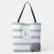 Grey Stripe and Succulent Monogrammed Personalized Tote Bag