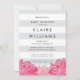 Modern watercolor floral striped baby shower invitations features wide grey and white stripes with a grouping of watercolor peony flowers along the bottom in bright pink and rose quartz watercolor. Add your baby shower details in an elegant mix of block and script lettering in coordinating grey and black. Cards reverse to solid rose quartz pink. A beautiful choice for baby girls on the way!
