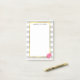 Grey Stripe & Pink Peony Personalized Post-it Notes