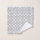 Handsome bath towel set done in grey and white featuring stripes, on the bath towel and a big grey one letter monogram. The wash cloth is done in a grey and white damask pattern and the hand towel is grey with a white band, on one side and a white single letter monogram. Personalize the letter to suit your needs.