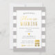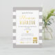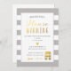 Warm grey and white stripes with gold accents create a feminine and masculine house warming party invitation design. "Heart" and "Key" elements are move-able when you click "customize it".