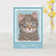 Grey Tabby Cat Painting - Cute Original Cat Art Card