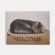 Grey Tabby Cat Sleeping On Box Welcome Doormat