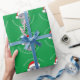 Grey Tabby Christmas Cat On Green Wrapping Paper