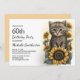 Grey Tabby Kitten Cat Sunflowers 60th Birthday Invitation