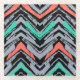 Grey, Teal, And Coral Hand Drawn Chevron Pattern Glass Coaster