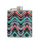 Grey, Teal, And Coral Hand Drawn Chevron Pattern Hip Flask