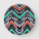 Grey, Teal, And Coral Hand Drawn Chevron Pattern Round Clock