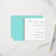 Wedding RSVP cards in elegant and contemporary charcoal grey, turquoise aqua blue, light pastel mint green and white retro and casual circles and diamonds geometric pattern. Customizable with your wedding details, available in many matching wedding products.