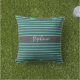 Grey Teal Stripes Patterns White Custom Name Cute Outdoor Pillow