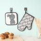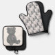 Grey teddy bear pattern, pink heart, silhouette oven mitt & pot holder set