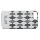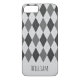 An iPhone 7/8 case designed with an argyle pattern in grey tones. Customize the iPhone case with your name or text among other options.