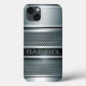 Cool metallic look with metal mesh and brushed aluminum in black and grey tones. Custom and optional monogram. Available on other products