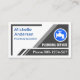 Over at the top right corner is a blue faucet logo you can use followed by the business name "PLUMBING SERVICE" and the phone contact. To the left of this is your prestigious name and job title.