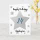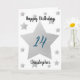 Personalized grey watercolor stars 14th birthday card for him. The front features watercolor grey stars and a place for you to personalize with the birthday recipient's name. The inside card message can be easily personalized and the back with the year. This stars personalized 14th birthday card would make a unique keepsake for him.