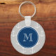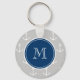 Grey White Anchors Pattern, Navy Blue Monogram Keychain