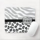 Grey, White & Black Zebra & Cheetah Skin Custom Mouse Pad