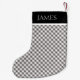 Grey White Gingham Black Collar Custom Name Small Christmas Stocking