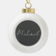 Grey White Handwritten Minimalist Your Name Ceramic Ball Christmas Ornament