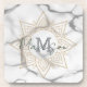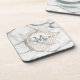 Grey & White Marble Effect Gold Mandala Monogram beverage coaster