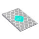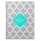 Grey White Moroccan #5 Brt Aqua 3 Initial Monogram Notebook