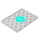 Grey and White Moroccan Quatrefoil Trellis Pattern #5, Bright Aqua Quatrefoil 3 Initial Monogram Label