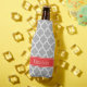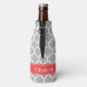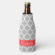 Grey White Moroccan #5 Coral Red Name Monogram Bottle Cooler
