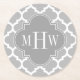Grey White Moroccan #5 Dk Grey 3 Initial Monogram Round Paper Coaster