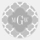 Grey White Moroccan #5 Grey 3 Initial Monogram Classic Round Sticker