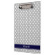 Grey White Polka Dots Navy Blue Name Monogram Clipboard