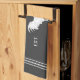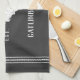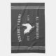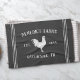 Celebrate life on the farm with this cute personalized kitchen towel featuring your family name or farm name and year established in crisp white lettering accented with a chicken illustration on a charcoal grey background. Rope stripe detailing along the sides completes this rustic farmhouse style design.