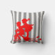 Grey and white throw pillow designed with red silhouette of a little boy towing a little girl on a tricyclye