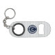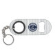 Modern light grey and white striped pattern with custom laurel wreath logo monogram in navy blue to add your own initial, name or text - personalized mini keychain bottle openers.