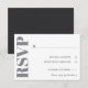 Elegant typography wedding RSVP card in shades of grey and white.