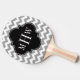 Grey Wht Chevron Black Quatrefoil 3 Monogram Ping Pong Paddle