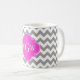 Grey Wht Chevron Hot Pink Quatrefoil 3 Monogram Coffee Mug