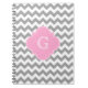 Grey Wht Chevron Pink Quatrefoil Monogram Notebook