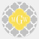 Grey Wht Moroccan #5 Pineapple 3 Initial Monogram Classic Round Sticker