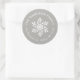 Affordable custom printed round return address stickers personalized with your family name and return address. This simple modern holiday design features a white snowflake on a neutral light grey background. Use the design tools to choose any background colour, edit text fonts and colours or upload your own photos to design your own unique holiday return address labels, envelope seals or gift tag stickers.