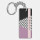 Grey Zigzag, Grey Chevron, Purple, Your Name Keychain